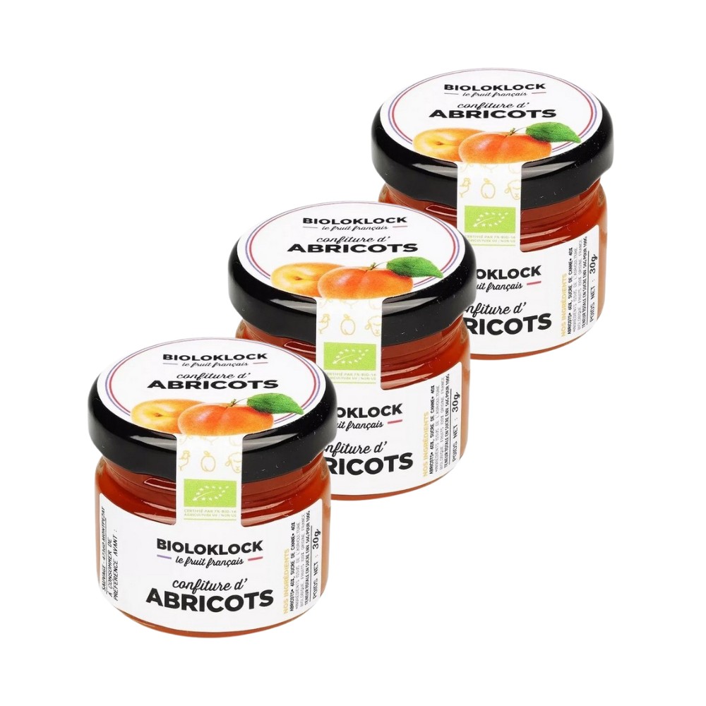 3x Prémiové francúzske džemíky BIO, až 60% ovocia pestovaného v ekologickom poľnohospodárstve. Marhuľové, v mini pohároch 30g sú ideálne na raňajky ku koláču alebo croissantu, alebo do jogurtu.