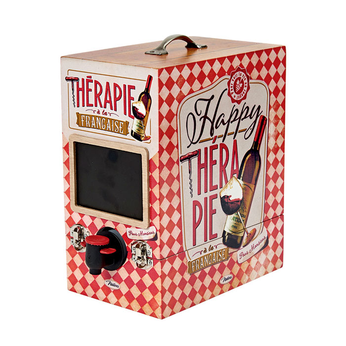 - Drevený Bag in box (BIB) na víno 3L "Happy thérapie vin" 25x21x13 cm