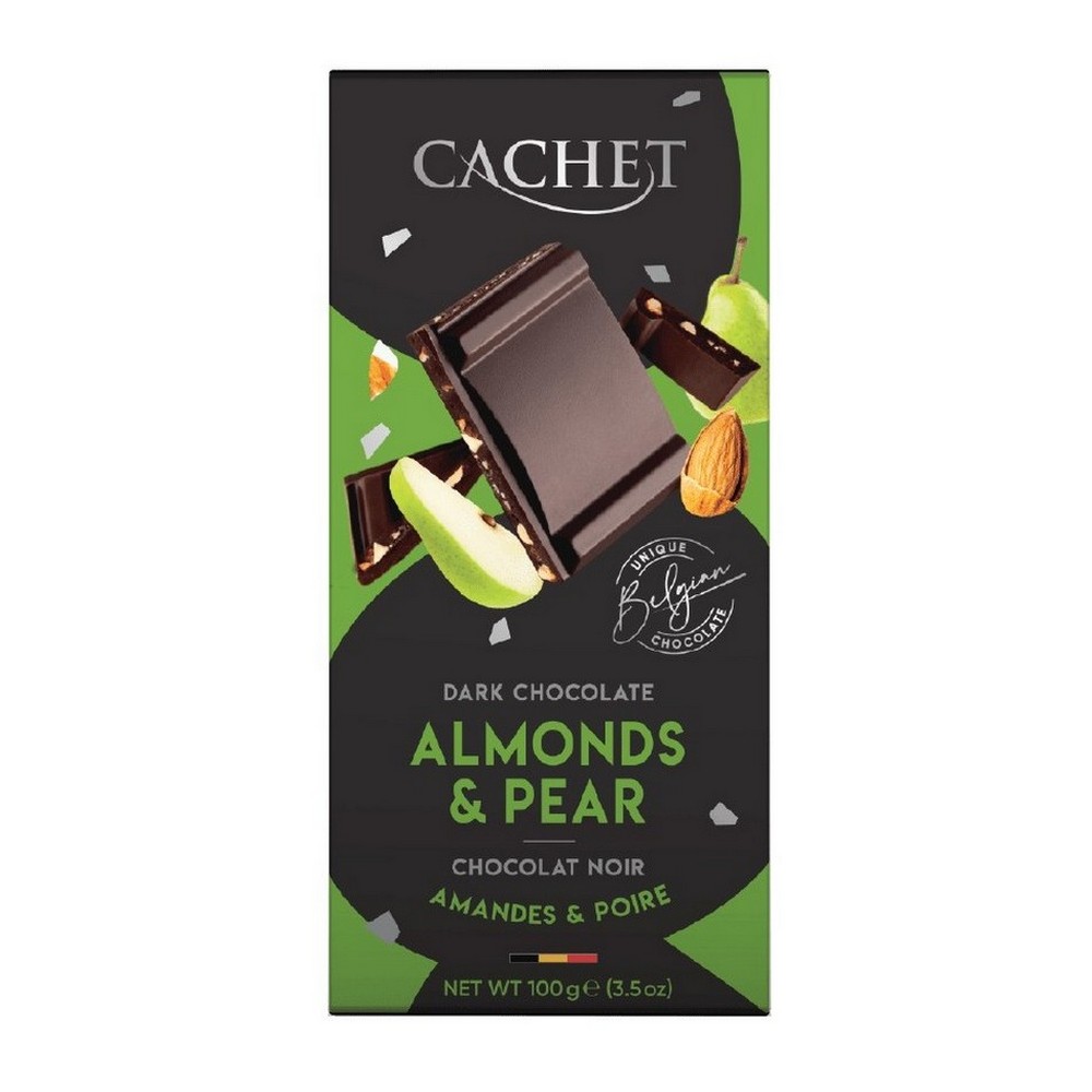 Cachet Horká čokoláda s hruškou a mandľami, Belgicko, 100gSkladom > 5 ks4,30 EUR/ ks