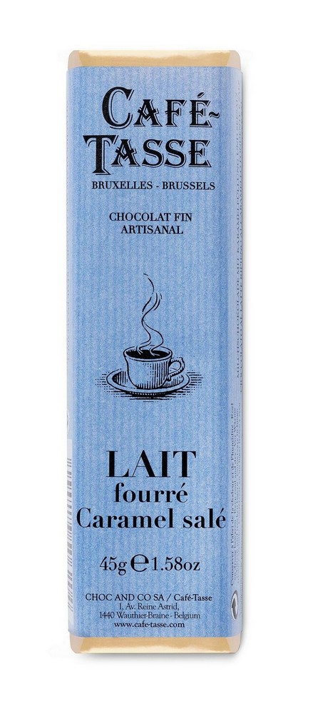 Cafe Tasse Mliečna čokoládová tyčinka s praliné so slaným karamelom, Belgicko, 45gSkladom > 5 ks3,90 EUR/ ks