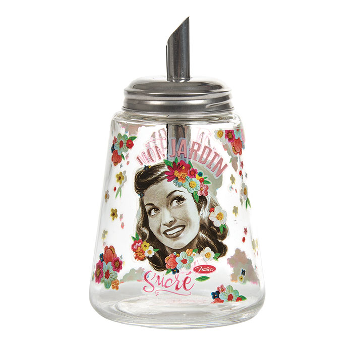 Cukornička "Mon jardin sucré" D 8,5 x 14,5 cm, sklo + plech