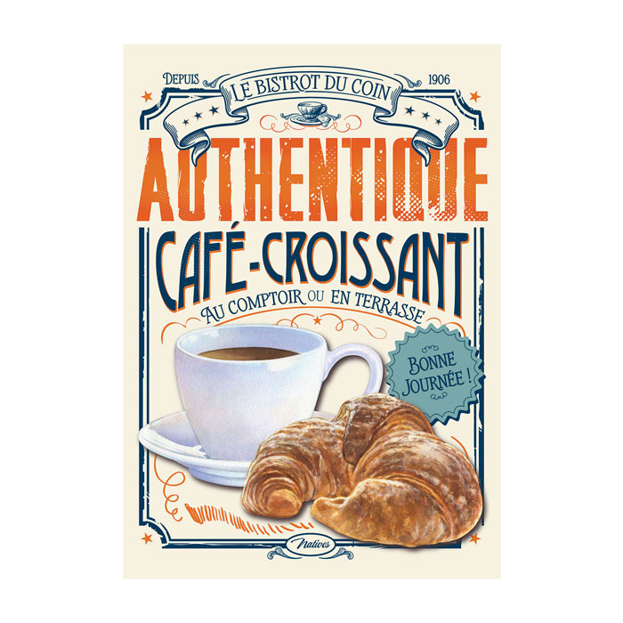 - Dekoračná tabuľka L "Café croissant" 30x40 cm, plech