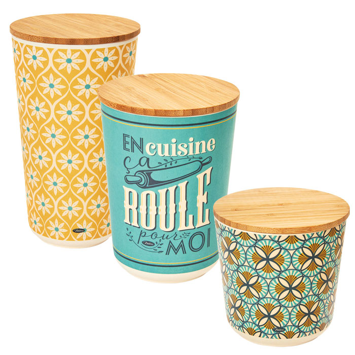 Dózy na potraviny sada 3ks "Ça roule pour moi" D 10,5 x H. 10,5 cm / D 10,5 x H.14,5 cm /