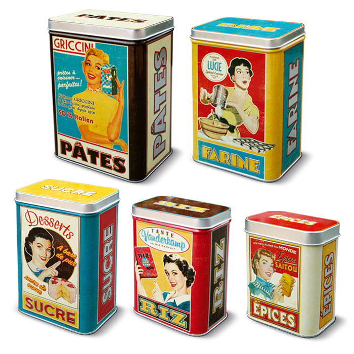 Dózy na potraviny sada 5ks "Housewives" 12.5x9x17.5 cm / 11x7.5x16 cm /9.5x6.5x14.5cm / 9x
