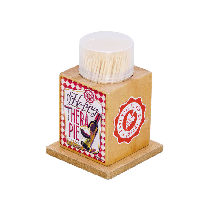 - Držiak na špáradlá "Happy thérapie vin " 6x6x8.5 cm, drevo