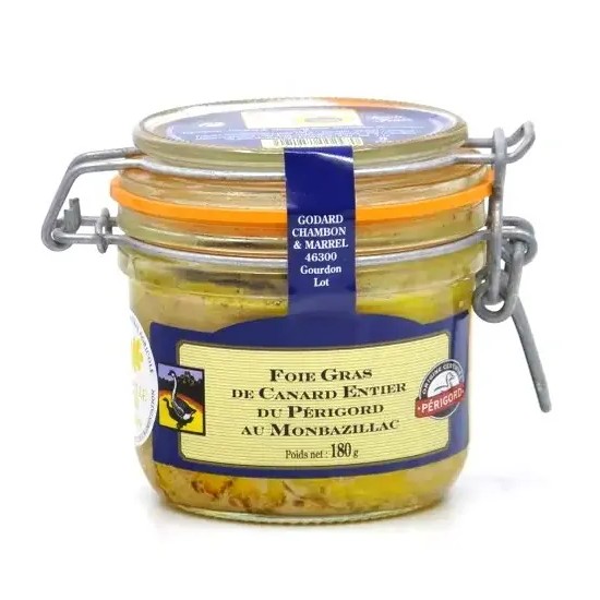 Godard Kačacie pečienky Foie gras ENTIER s vínom Monbazillac (2%), Francúzsko, XL pohár 180g, s chráneným označením pôvodu z francúzskej oblasti Périgord.