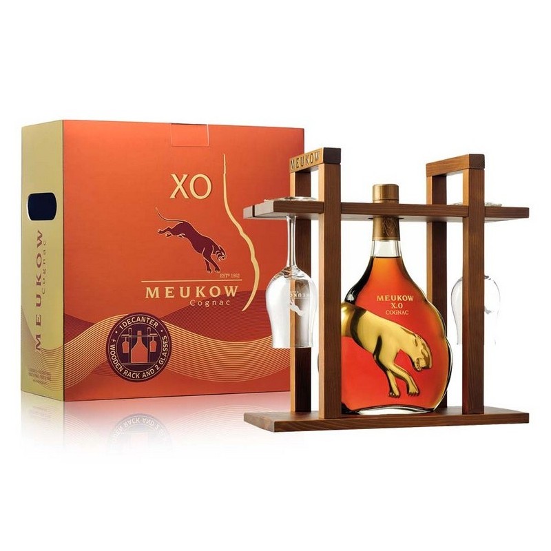 Meukow koňak XO drevený stojan a poháre, Francúzsko, 40% 0.,7lSkladom 1 ks140,80 EUR/ ks