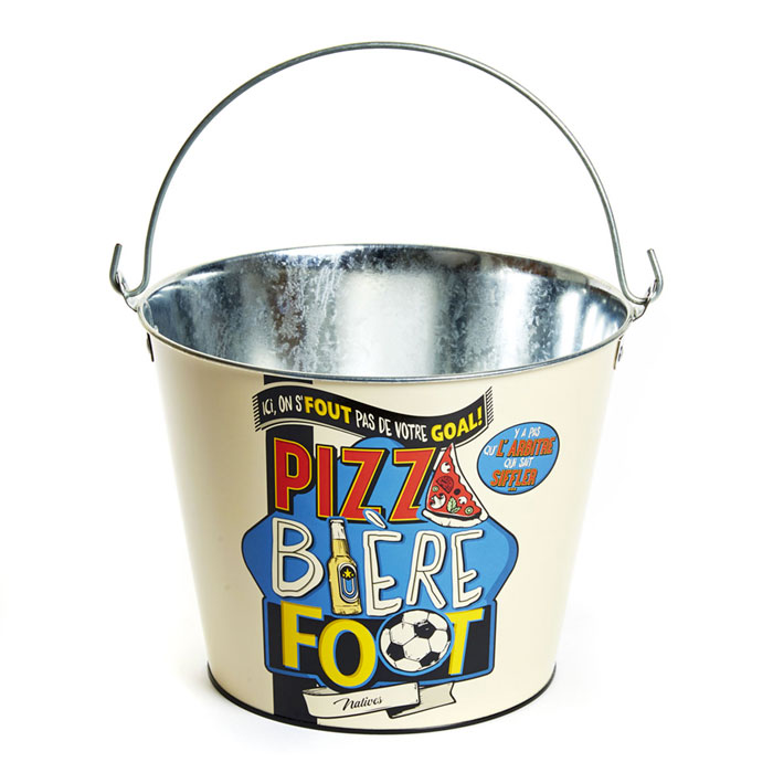 Vedro s motívom "Pizza Biere Foot" je krásnym darčekom pre každého futbalového fanúšika ale tiež milovníkov pizze a piva :)