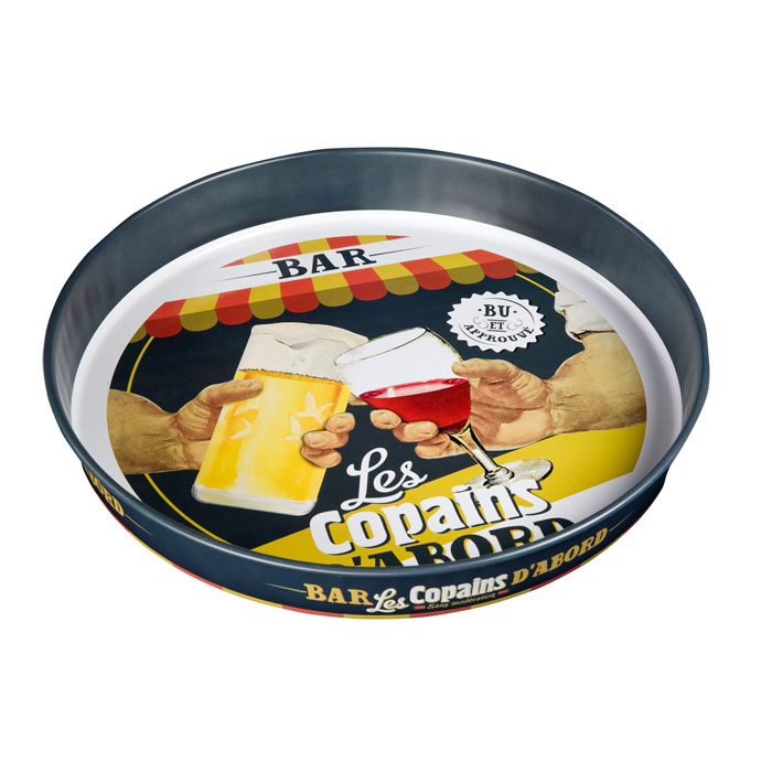 Servírovací podnos okrúhly "Les Copains d' abord" 34x5 cm, plechSkladom > 5 ks14,26 EUR/ ks